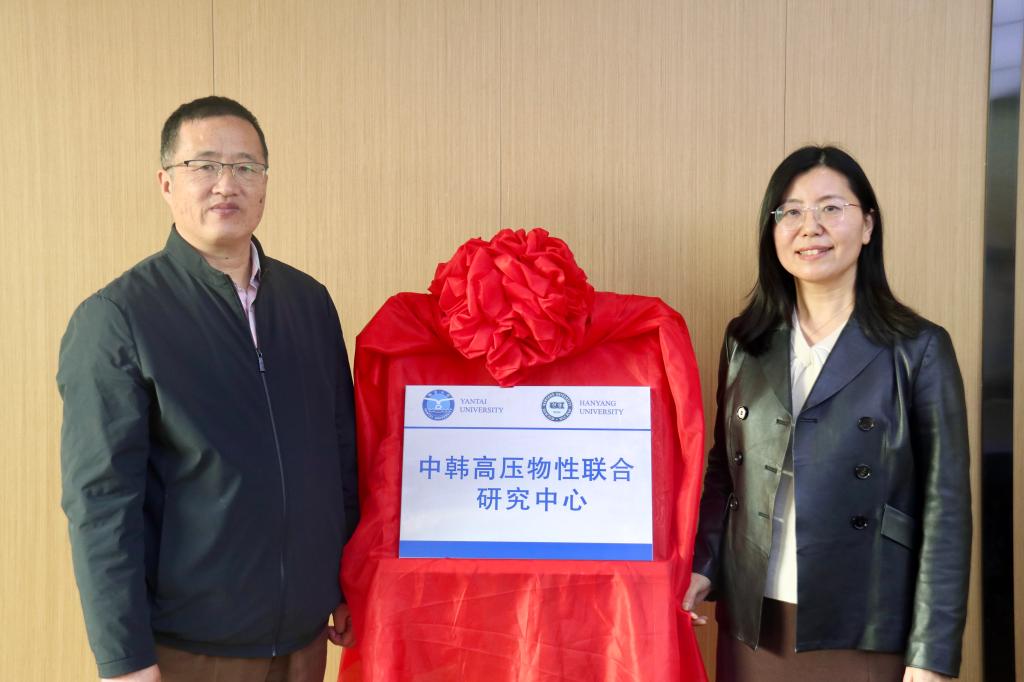 签约仪式结束后,双方共同为汉阳大学烟台大学合作实验室“中韩高压物性联合研究中心”揭牌并进行云端合影。