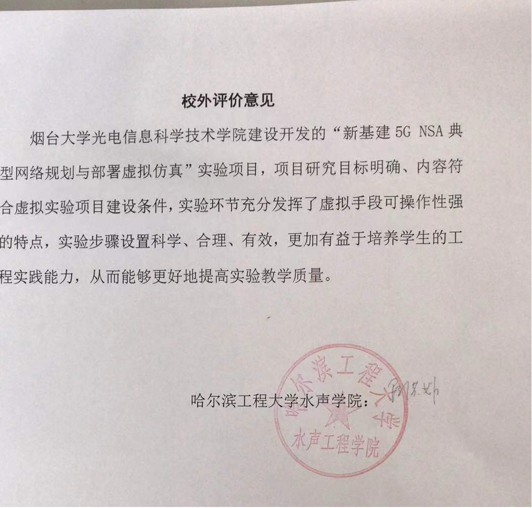 哈尔滨工程大学水声工程学院,首批电子信息类国家级虚拟仿真实验教学一流课程《声波基本要素的测量与分析实验》负责人陈洪娟教授评价意见: