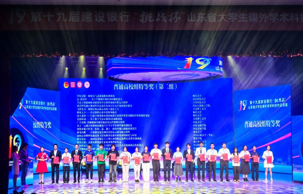 6月4日—6日,由共青团山东省委、山东省科学技术协会、山东省教育厅、山东省科学技术厅、山东社会科学院、山东省学生联合会主办,临沂大学承办的第十九届建设银行“挑战杯”山东省大学生课外学术科技作品竞赛终审决赛在临沂大学举行。我院张一康同学领衔的“碧海慧眼”团队斩获特等奖,这是学院在这一赛事上所取得的历史最好成绩!
