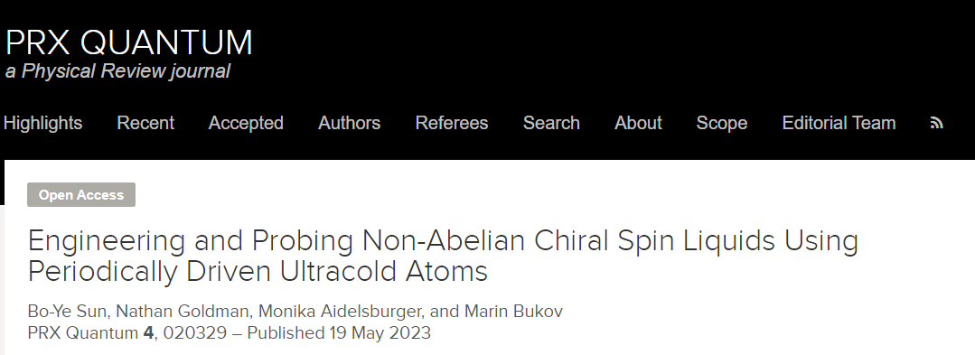 近日,烟台大学物理与电子信息学院教师孙伯业博士与比利时布鲁塞尔自由大学Goldman教授,德国普朗克研究所Bukov教授在量子计算领域顶级期刊,由美国物理学会主办的《PRX Quantum》(影响因子:7.514)上发表了高水平研究论文。论文题目为"Engineering and Probing Non-Abelian Chiral Spin Liquids Using Periodically Driven Ultracold Atoms",孙伯业博士为第一作者及共同通讯作者。