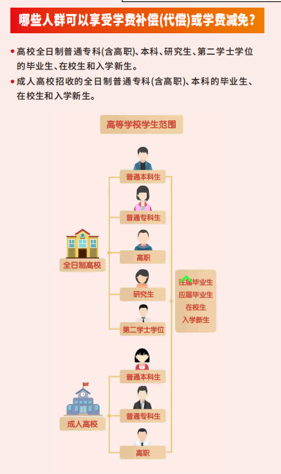 2.学费补偿、国家助学贷款代偿以及学费减免标准,本专科生每生每年最高不超过20000元,研究生每生每年最高不超过25000元。超出标准部分不予补偿、代偿或减免。