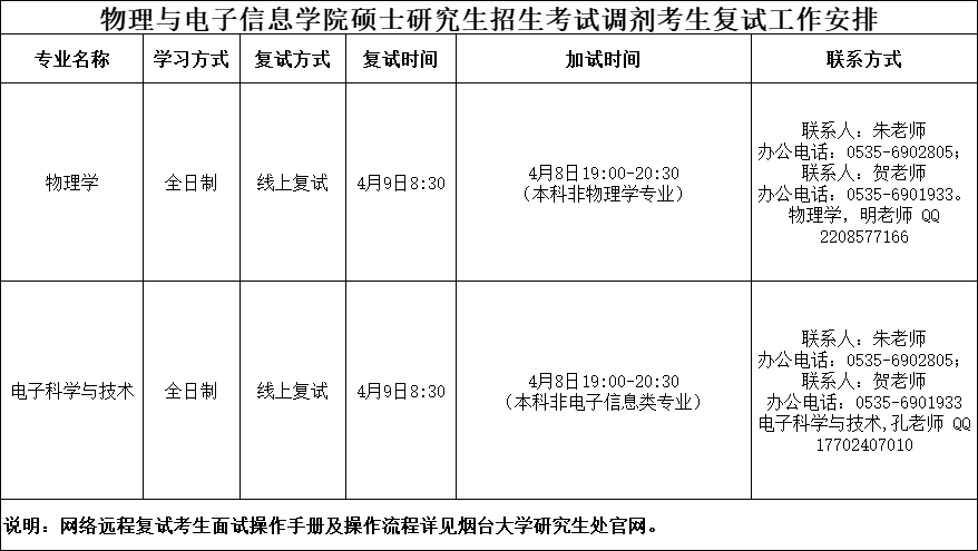 物理与电子信息学院硕士研究生招生考试调剂考生复试工作安排